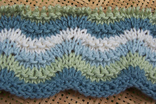 Ripple in still waterWhen there is no pebble tossed, Nor wind to blow . . .Now that’s stuck in my head. I love the colors, and also like to avoid YOs in baby blankets. They must eat baby toes, YOs, and that’s no fair.