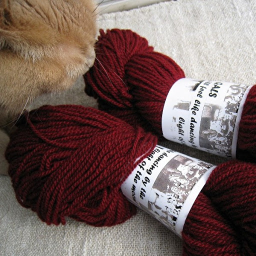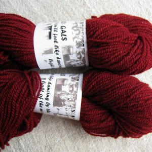 This is Buffalo Gals Bison Merino 2-Ply in Garnet. Clara Parkes reviewed its cousin, Bison Merino 3-Ply, in this past week’s Knitter’s Review newsletter.