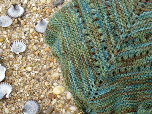 4. Ah, survivor Jane. How brave and wonderful you are. Do you know that? I hope you do. Glad to see your post as I was worried about you (as you know). The hair that CPAknit talks about … I wish I had seen it, however you were hiding that cute new "do" under your cap when I finally met you for the first time.The shawl has the colors of the sea in it and I adored how you photographed it on the beach amongst the shells. Perfection!So glad you were just too busy to post and feeling so well! That is indeed a good thing.XXOO