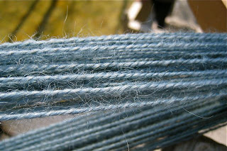 One of my other accomplishments for the day is this little skein of yarn that I began spinning on Wednesday. It’s Wensleydale wool in a color called “Blue Sky Indigo” from A Verb for Keeping Warm. I had two ounces, so my plied skein is just about 100 yards. I’ll figure out what to do with such a small amount after it’s set and washed. In the mean time, I had a happy time playing with the fiber and my Reeves wheel.