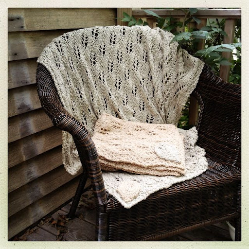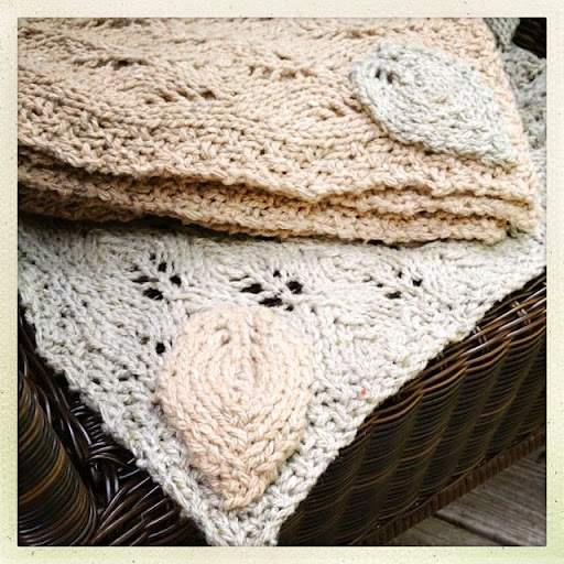 My summer knitting can be revealed: two blankets for the Remarkable R’s. I began knitting in early July, and I stitched the leaf on to the second blanket on August 1st. I love this pattern, and I’d like to make it again sometime. It was so comfortable to knit — repetitive enough to be easy but complicated enough to keep me interested.