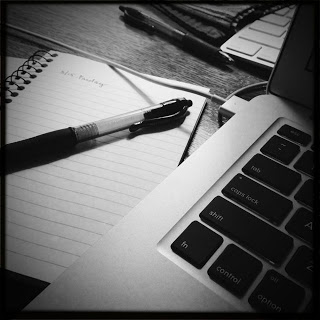 A new notebook, a trusty pen. On with the day. This one is spiral, small, simple. It can be tossed into my bag, or lie open on my desk.