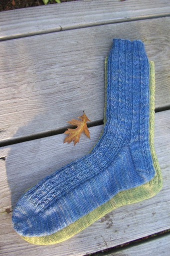 PhotoStylist R has very narrow feet, so she’s getting this pair. SockModel R has regular feet, so the originals fit her perfectly. I also decided to go with a longer leg and a regular shaped toe on the blue pair, because I think they’ll fit their intended feet better. See? You can do whatever you need to do with a sock pattern to make it fit or feel better, or suit your knitting style. That’s the beauty of knitting.